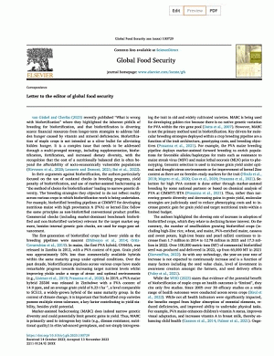 Letter to the editor of global food security