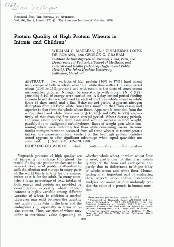 Protein quality of high protein wheats in infants and children