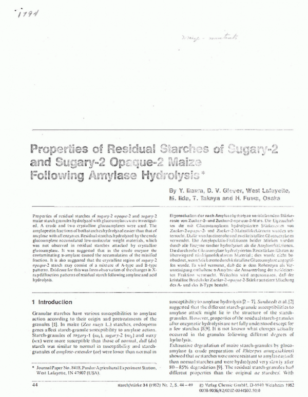 Properties of residual starches of Sugary-2 and Sugary-2 Opaque-2 maize following amylase hydrolysis