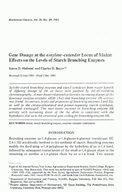 Gene dosage at the amylose-extender locus of maize : Effects on the levels of starch branching enzymes