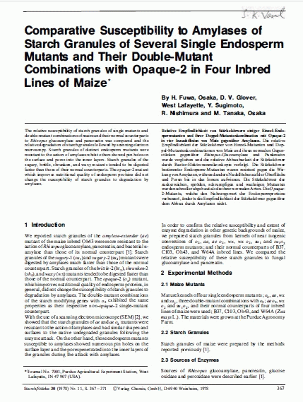 Comparative susceptibility to amylases of starch granules of several single endosperm mutants representative of floury-opaque, starch-deficient, and modified starch types and their double-mutant combinations with opaque-2 in four inbred lines of maize