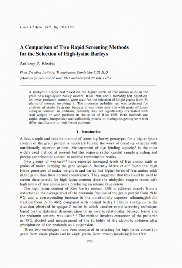 A comparison of two rapid screening methods for the selection of high-lysine barleys