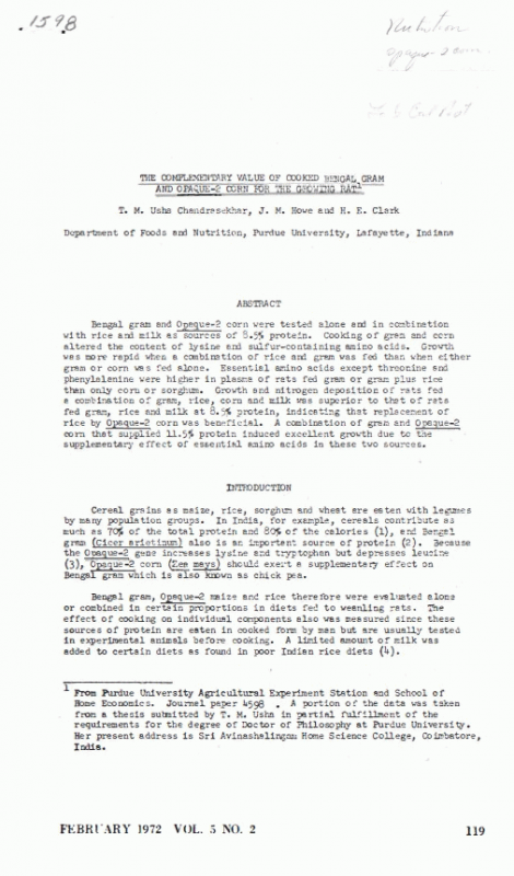 The complementary value of cooked Bengal gram and opaque-2 corn for the growing rat