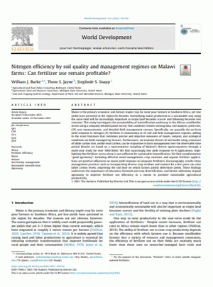 Nitrogen efficiency by soil quality and management regimes on Malawi farms : can fertilizer use remain profitable?