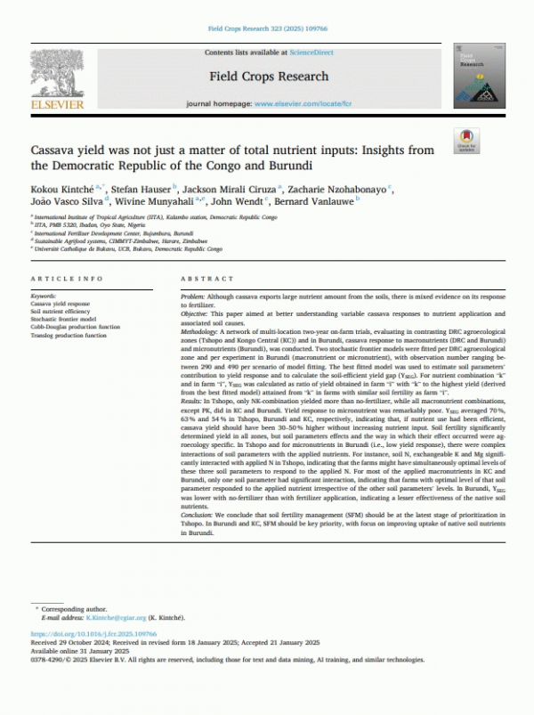 Cassava yield was not just a matter of total nutrient inputs : insights from the Democratic Republic of the Congo and Burundi