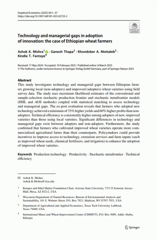 Technology and managerial gaps in adoption of innovation : the case of Ethiopian wheat farmers