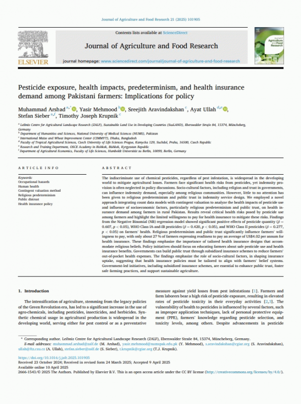 Pesticide exposure, health impacts, predeterminism, and health insurance demand among Pakistani farmers : Implications for policy
