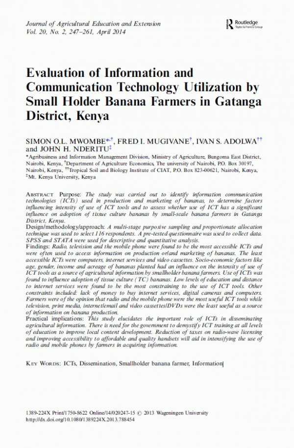 Evaluation of information and communication technology utilization by small holder banana farmers in Gatanga district, Kenya
