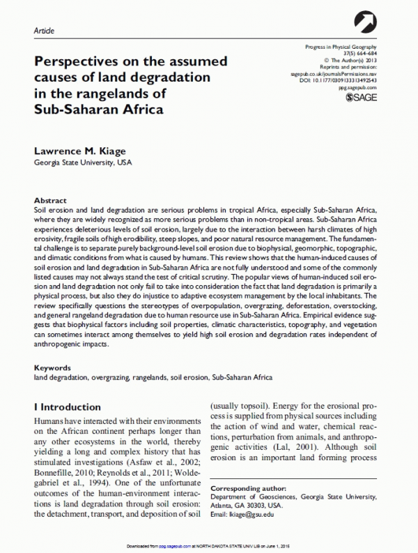 Perspectives on the assumed causes of land degradation in the rangelands of Sub-Saharan Africa