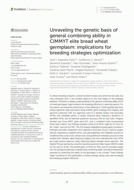 Unraveling the genetic basis of general combining ability in CIMMYT elite bread wheat germplasm : implications for breeding strategies optimization