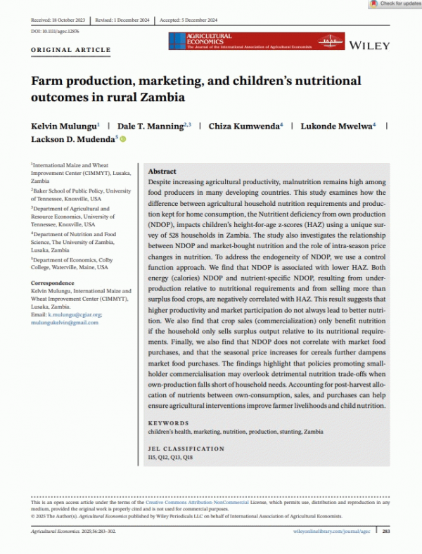 Farm production, marketing, and children's nutritional outcomes in rural Zambia