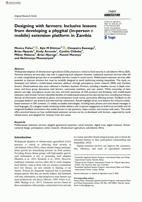 Designing with farmers : inclusive lessons from developing a phygital (in-person + mobile) extension platform in Zambia
