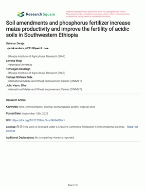 Soil amendments and phosphorus fertilizer increase maize productivity and improve the fertility of acidic soils in Southwestern Ethiopia