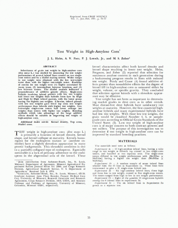 Test weight in high-amylose corn by