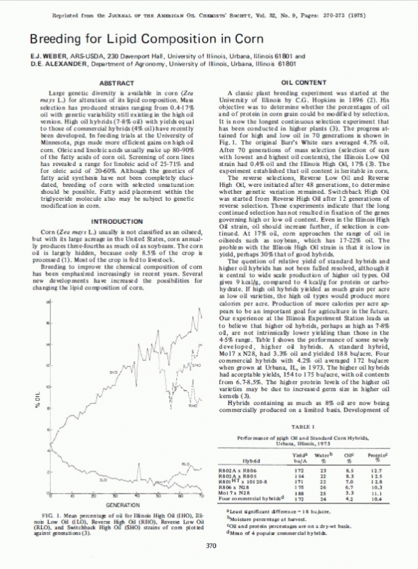 Breeding for lipid composition in corn by