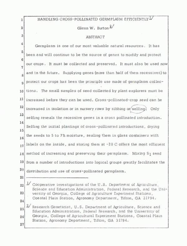 Handling cross-pollinated germplasm efficiently by