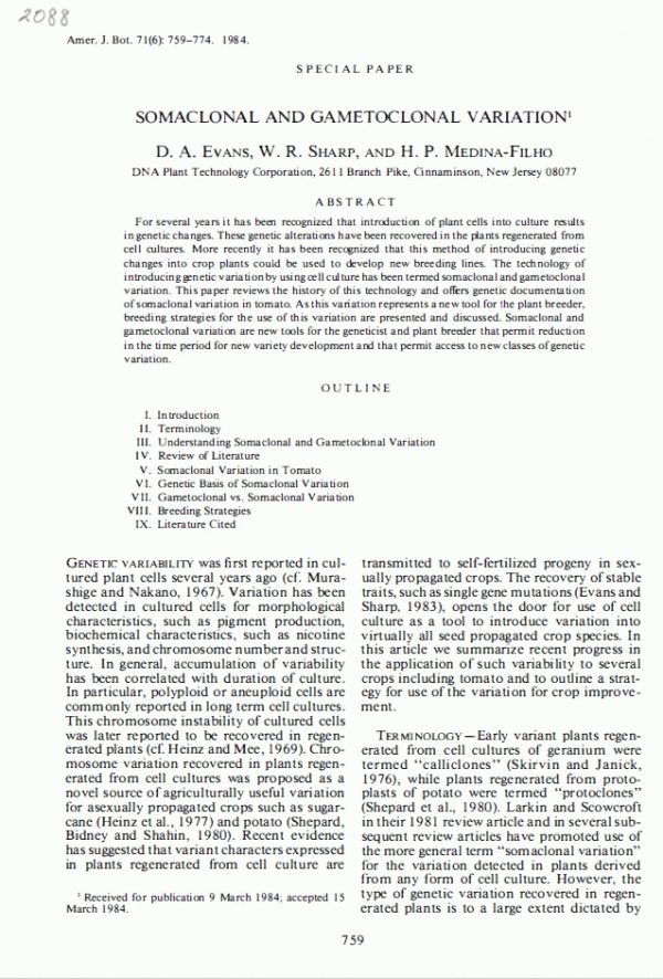 American Journal of Botany United States of America : John Wiley & Sons, 1984. v. 71, no. 6, p. 759-774