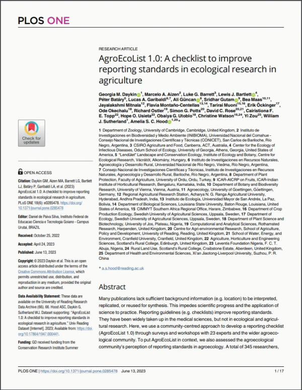 AgroEcoList 1.0 : A checklist to improve reporting standards in ecological research in agriculture by