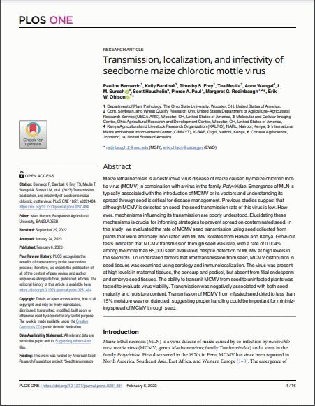 Transmission, localization, and infectivity of seedborne maize chlorotic mottle virus by