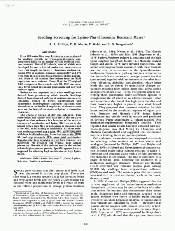 Crop Science United States of America : John Wiley & Sons, 1981. v. 21, no. 4, p. 601-607