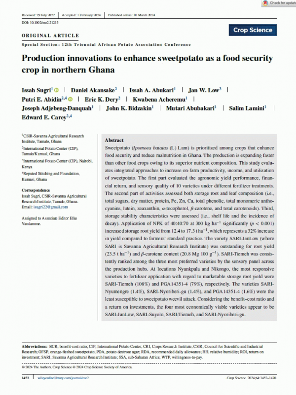 Production innovations to enhance sweetpotato as a food security crop in northern Ghana by