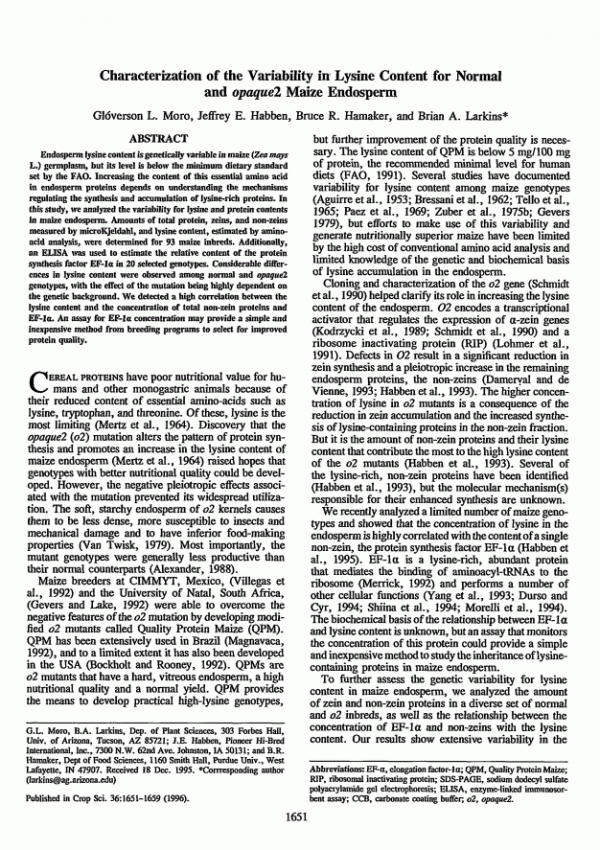 Breeding of Quality Protein Maize (QPM) by
