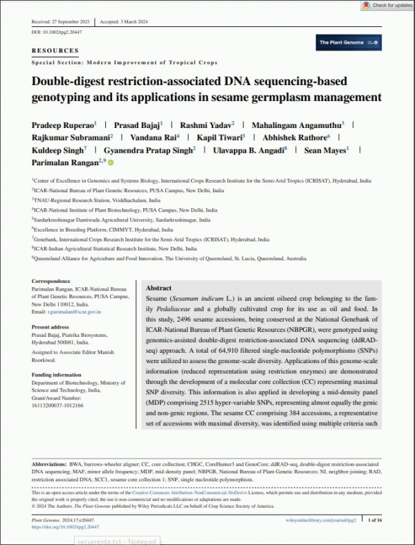 Double-digest restriction-associated DNA sequencing-based genotyping and its applications in sesame germplasm management by