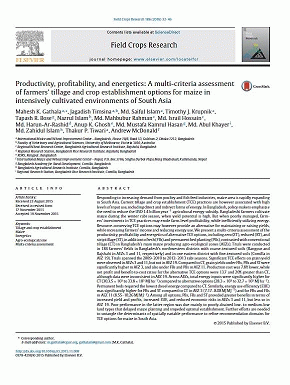 Productivity, profitability, and energetics : a multi-criteria assessment of farmers’ tillage and crop establishment options for maize in intensively cultivated environments of South Asia by