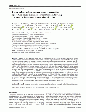 Trends in key soil parameters under conservation agriculture-based sustainable intensification farming practices in the Eastern Ganga Alluvial Plains by