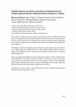 Improvement of yield and yield components of spring bread wheat varieties registered in Turkey by