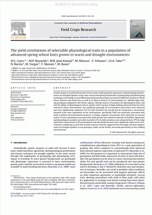 Proceedings of the 3rd International TRIGO Wheat Yield Potential Mexico : CIMMYT : USAID : MASAGRO : SAGARPA : CONACYT, 2017. p. 74-78