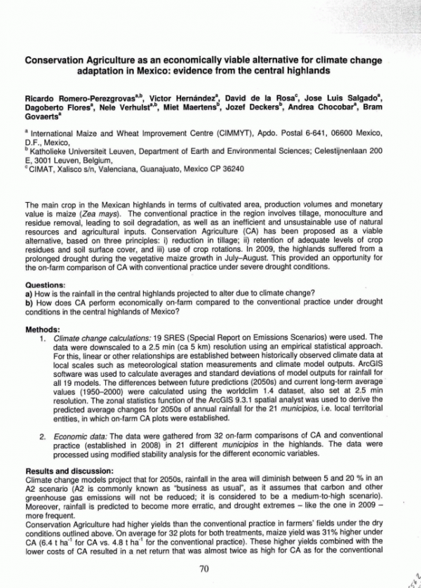 Conservation Agriculture as an economically viable alternative for climate change adaptation in Mexico: evidence from the central highlands by