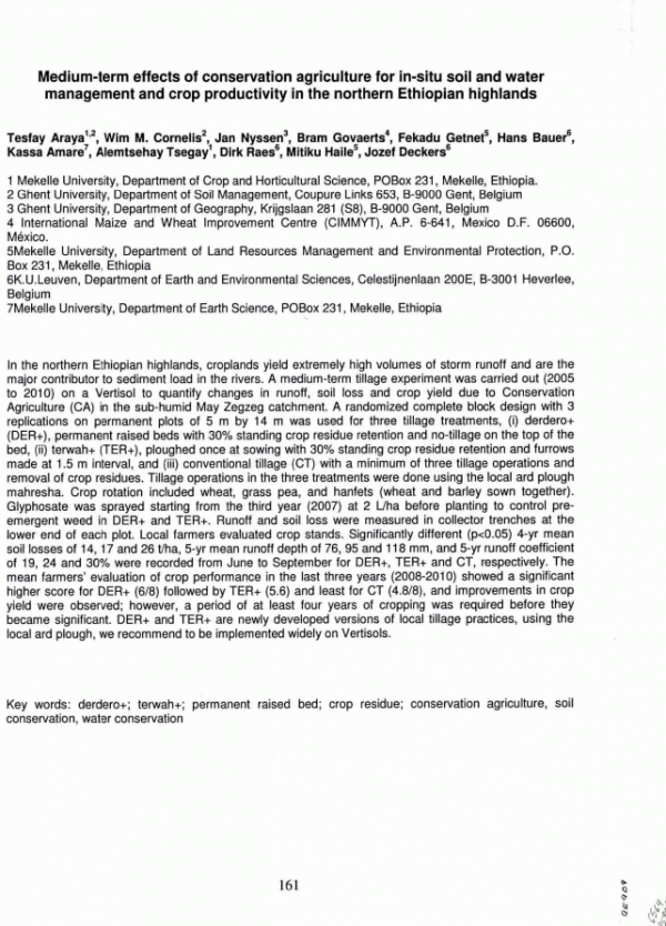 Conservation agriculture for the (sub) tropical highlands, results and insights from long-term trials in Mexico. Lessons for comparable agro-ecological conditions in sub-Saharan Africa by