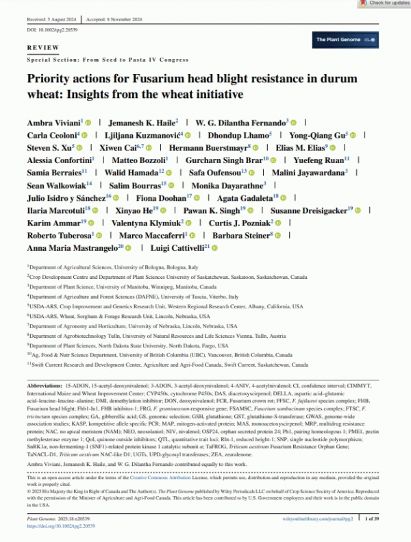 Priority actions for Fusarium head blight resistance in durum wheat : Insights from the wheat initiative by