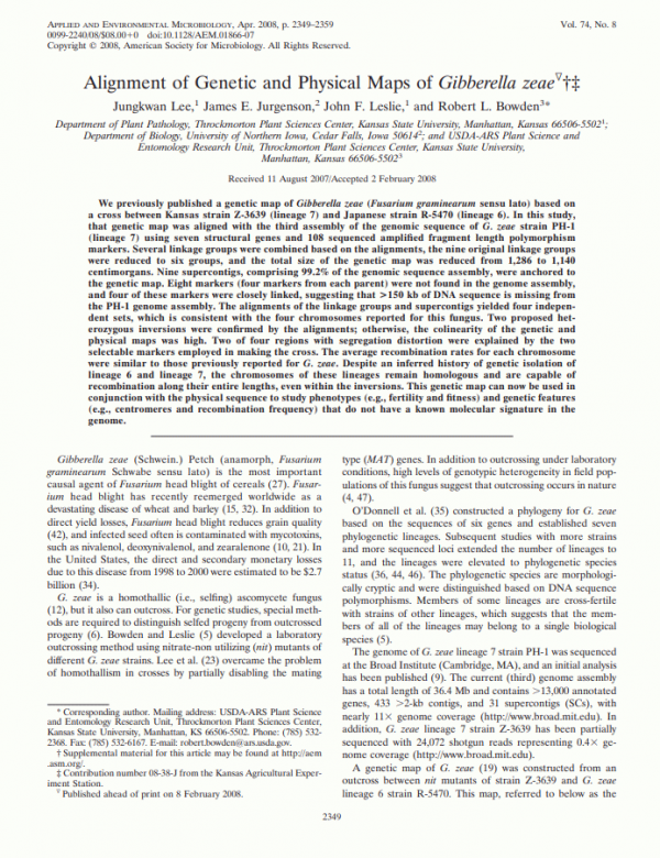 Diversity and sexuality in Gibberella zeae by